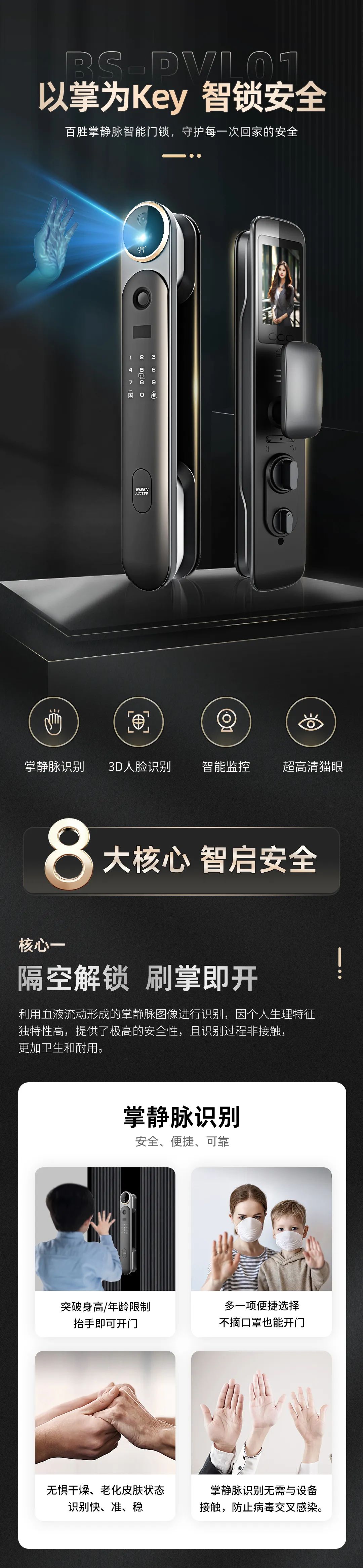 以掌为钥匙,百胜掌静脉智能门锁,守护每一次回家的安全。